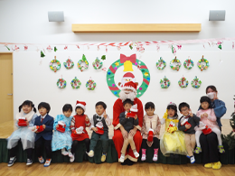 | クラス編成 | おひさま組(0歳児) つき組(1歳児) ほし組(2歳児) かぜ組(3歳児) そら組(4歳児) にじ組(5歳児) |