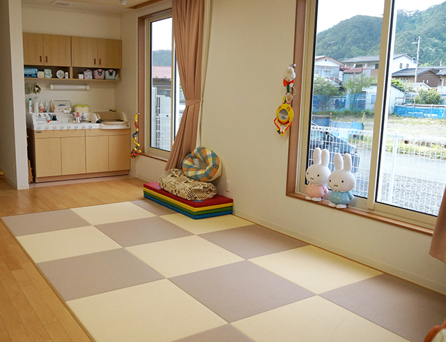 乳児室は柔らかな畳と、床暖房、空調設備をを採用し、快適に過ごせるように配慮しております。